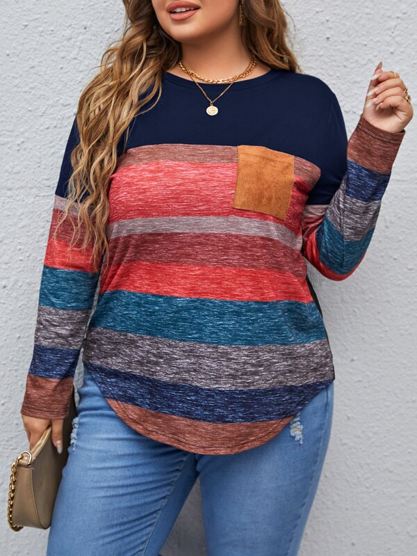 SHEIN LUNE Plus Cut And Sew Pocket Patched Tee