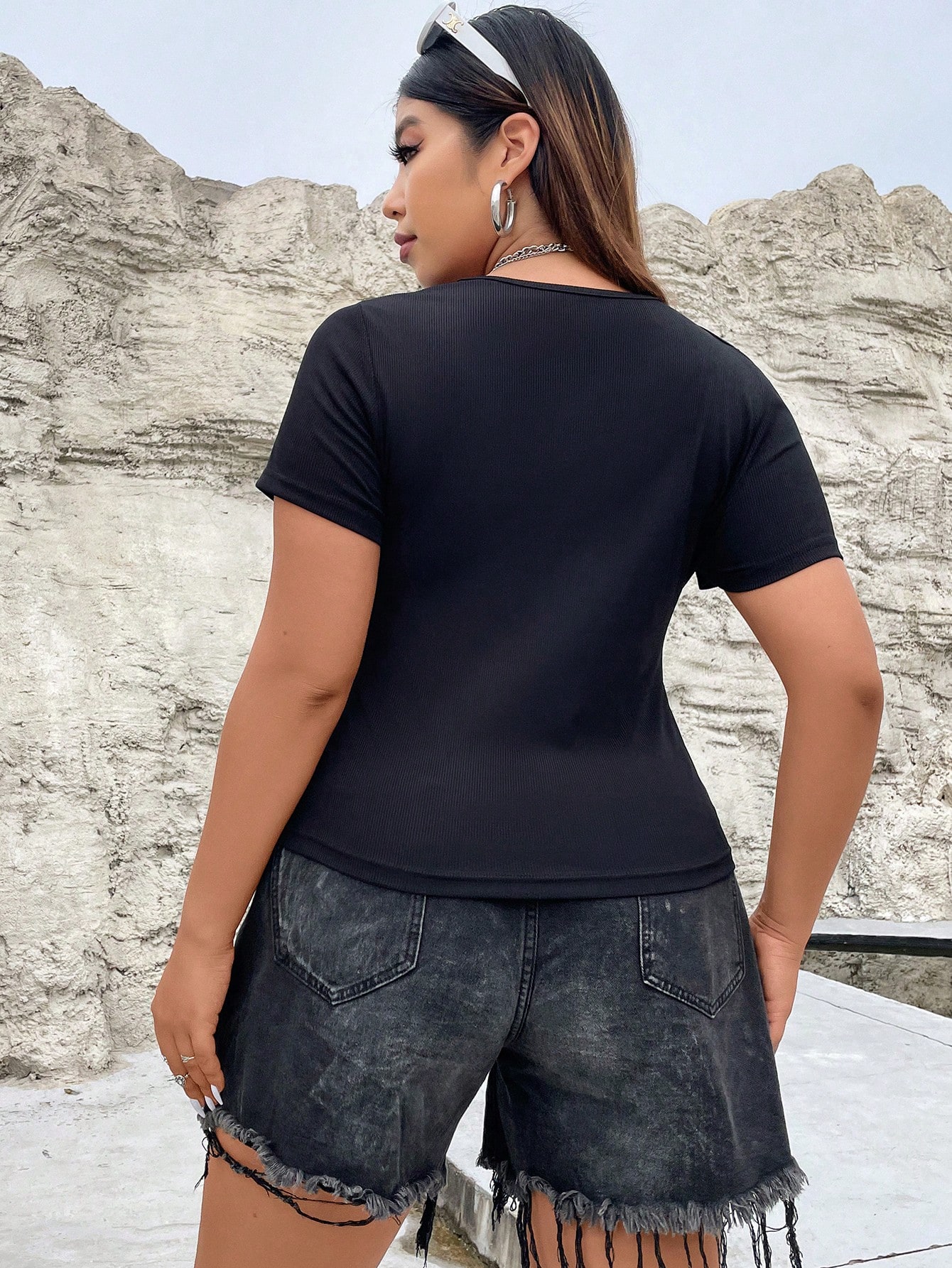 SHEIN LUNE Plus Cut Out Asymmetrical Neck Tee
