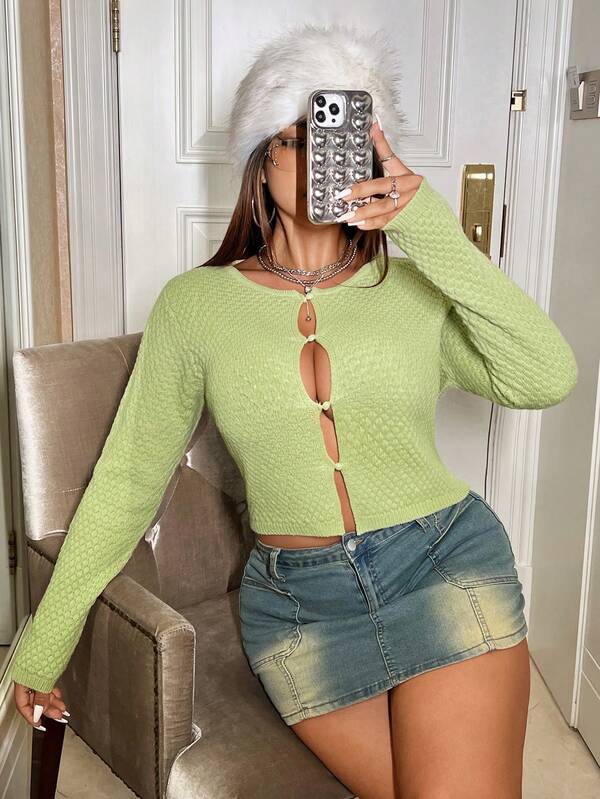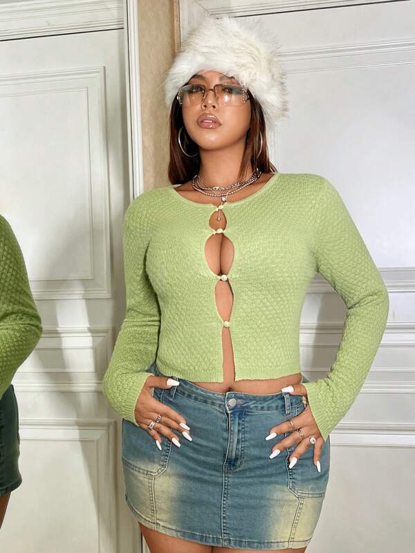 SHEIN ICON Plus Cut Out Button Front Crop Cardigan