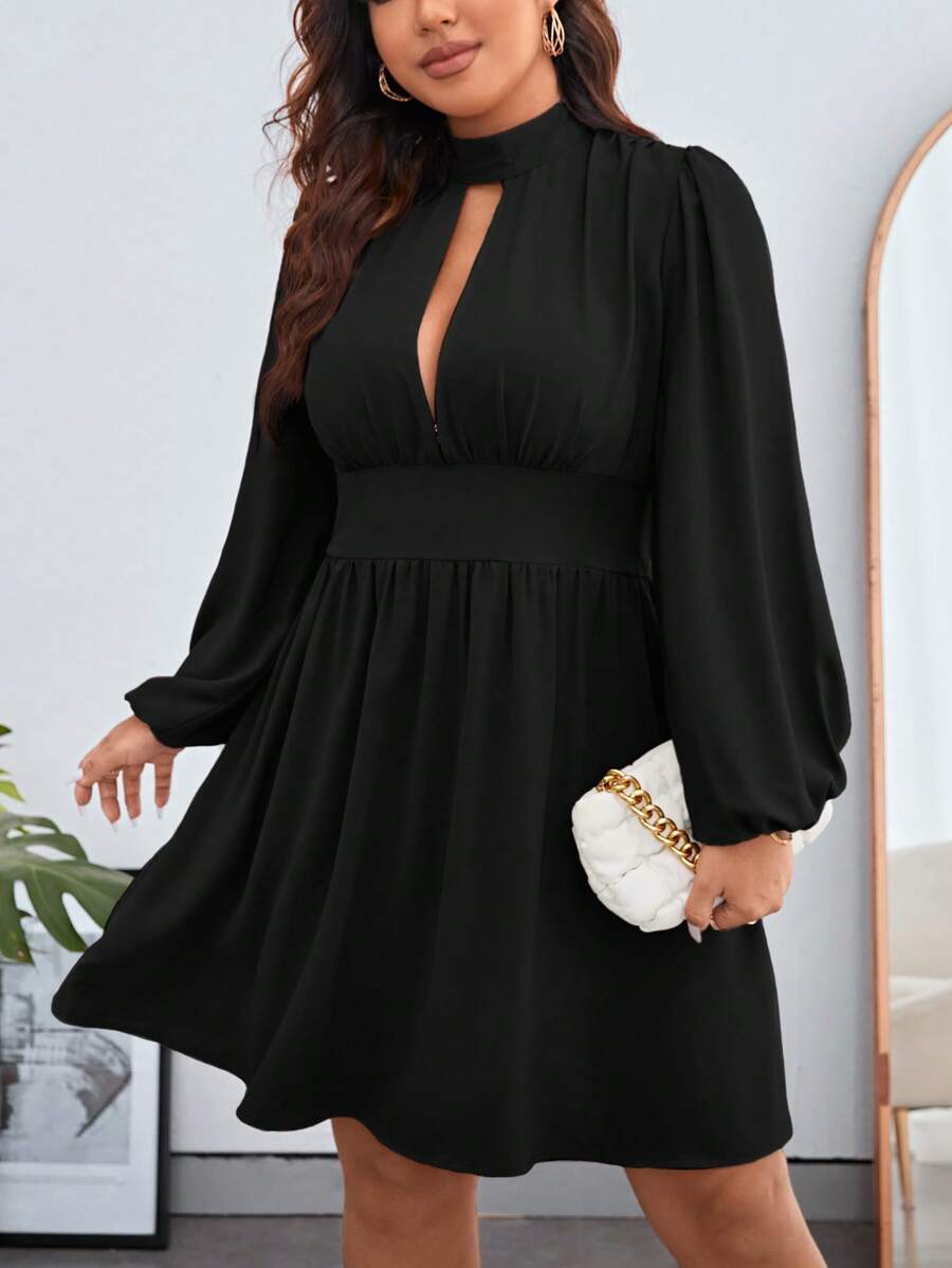 SHEIN Privé Plus Cut Out Front Lantern Sleeve Dress