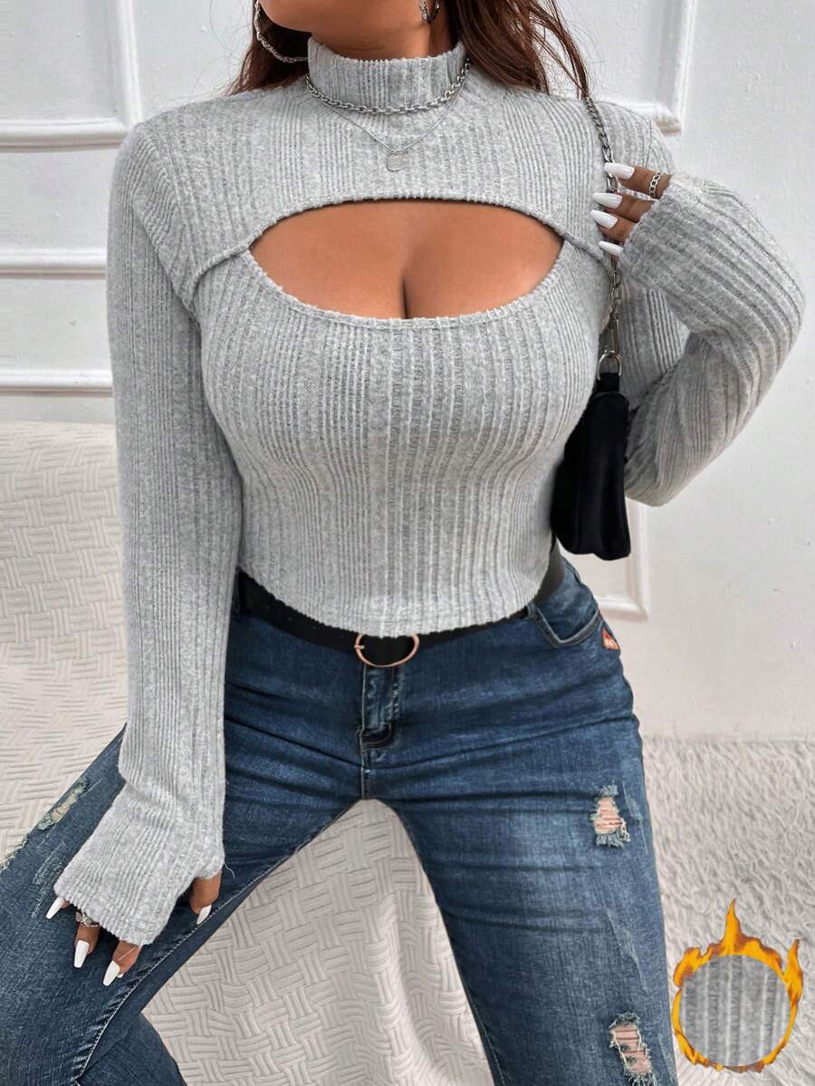 SHEIN Essnce Plus Cut Out Mock Neck Tee