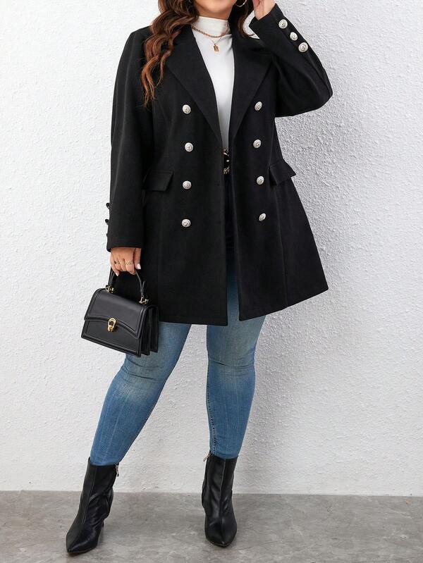 Plus Double Breasted Flap Detail Overcoat