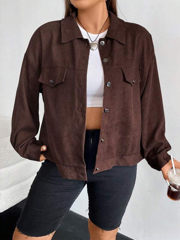 Plus Drop Shoulder Flap Detail Corduroy Jacket