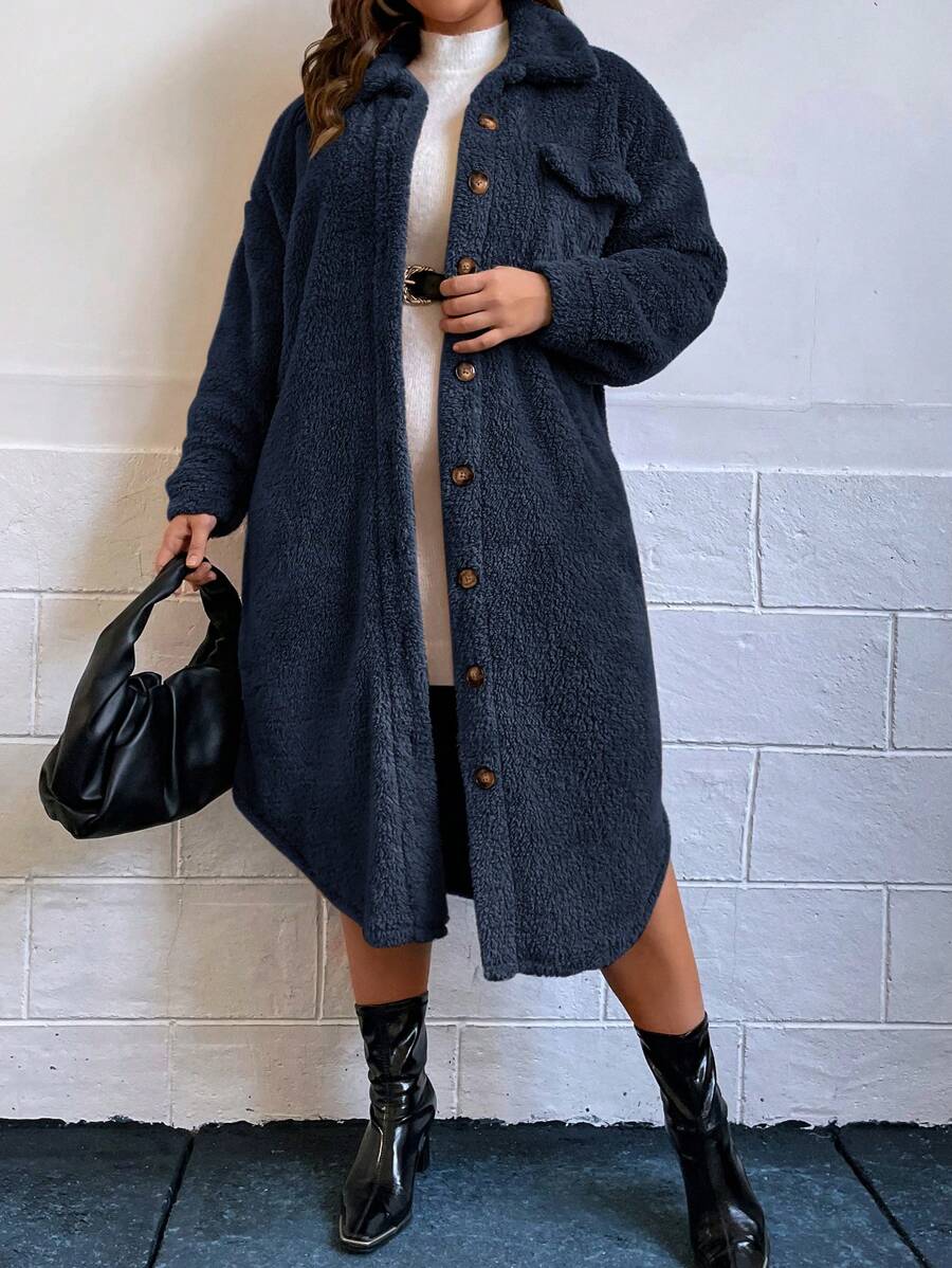 SHEIN LUNE Plus Drop Shoulder Flap Detail Flannelette Coat