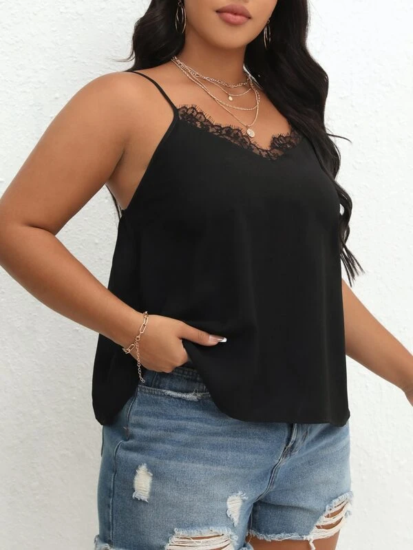 SHEIN Clasi Plus Eyelash Lace Trim Cami Top