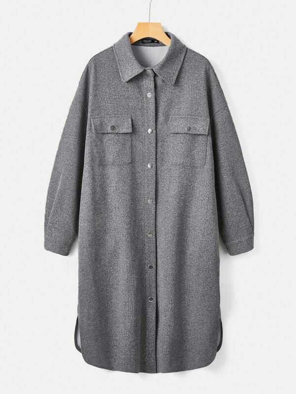 SHEIN EZwear Plus Flap Pocket Drop Shoulder Overcoat