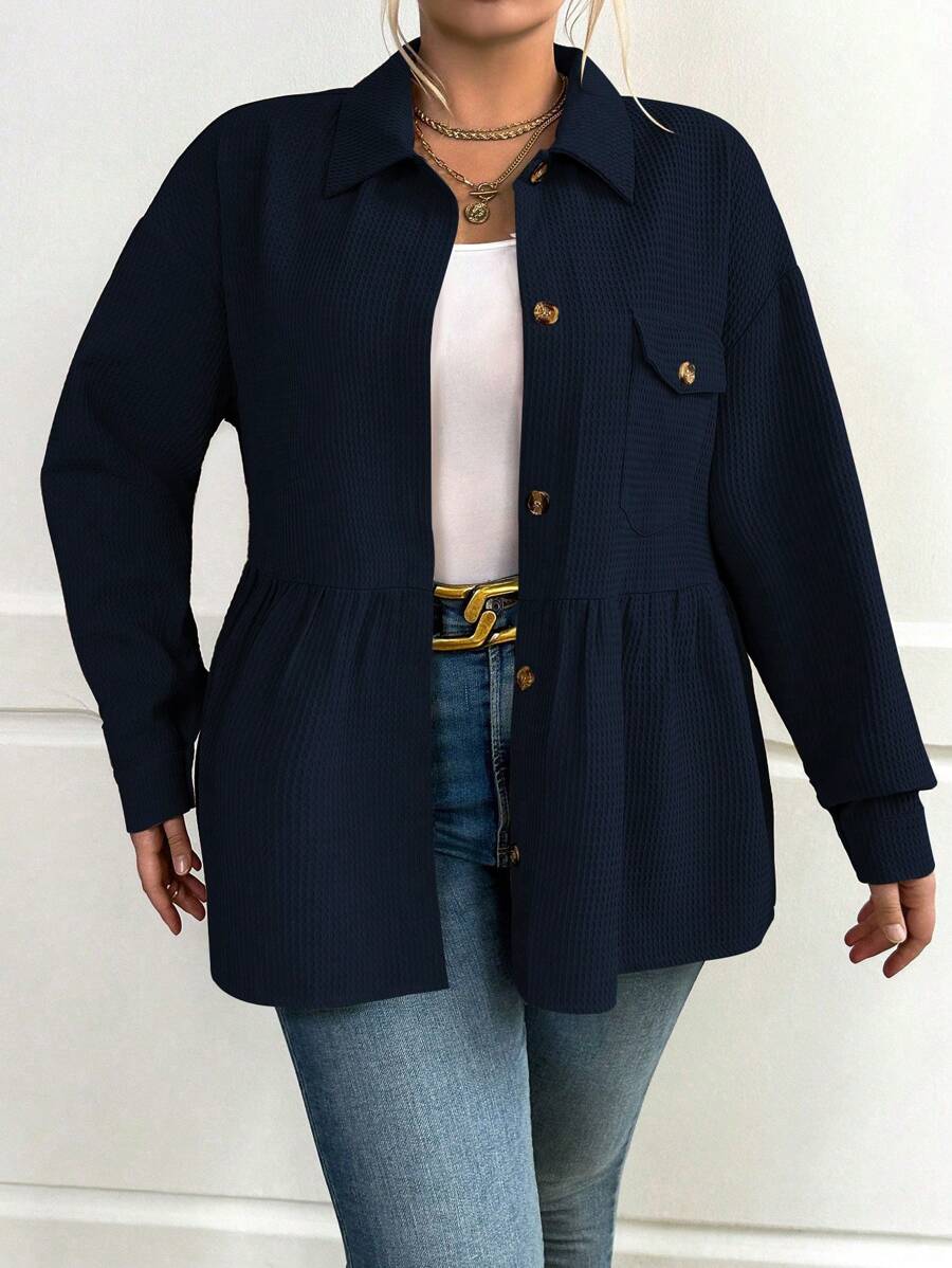 SHEIN Essnce Plus Flap Pocket Drop Shoulder Peplum Coat
