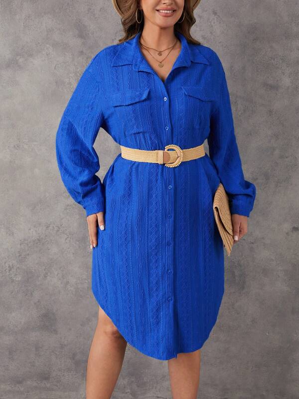 SHEIN LUNE Plus Flap Pocket Drop Shoulder Shirt Dress Without Belt