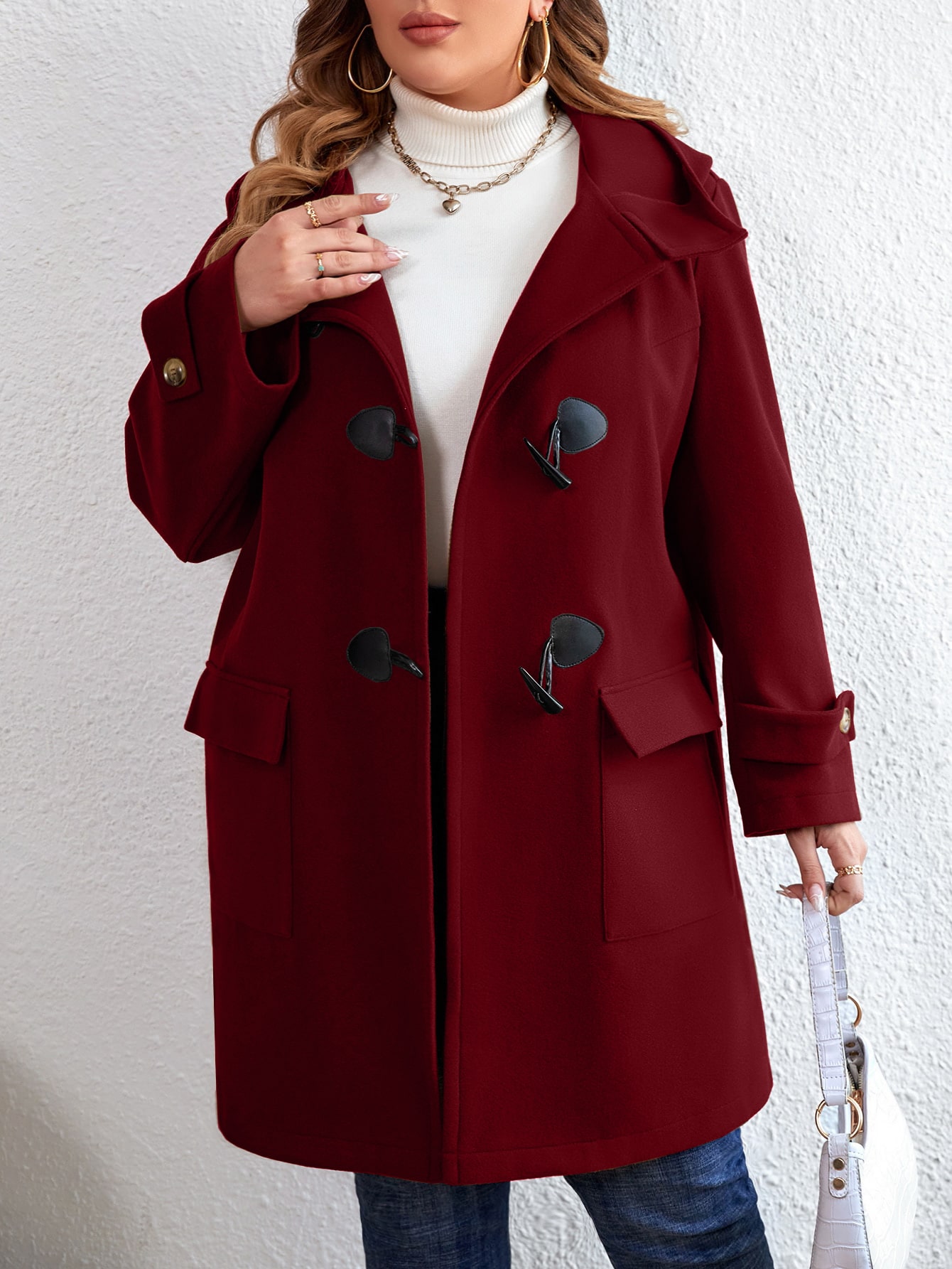 SHEIN LUNE Plus Flap Pocket Duffle Hooded Overcoat