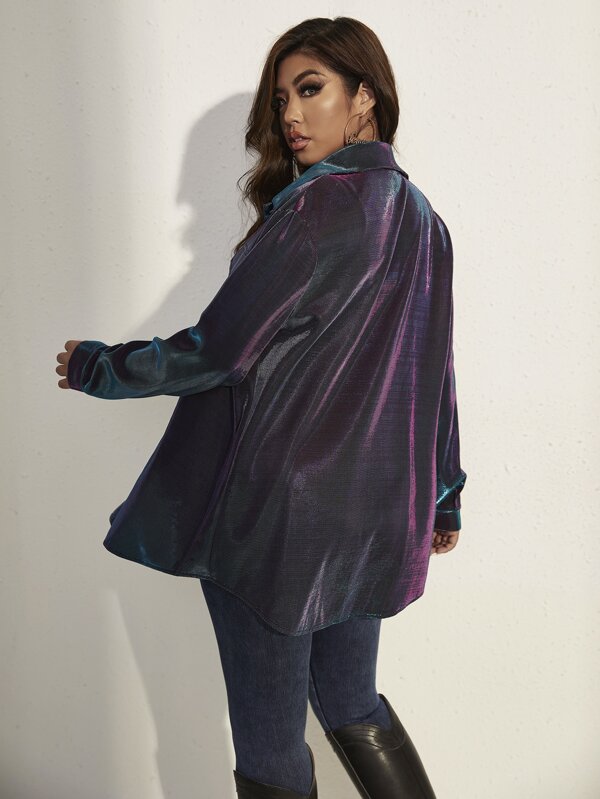 SHEIN Essnce Plus Flap Pocket Metallic Blouse