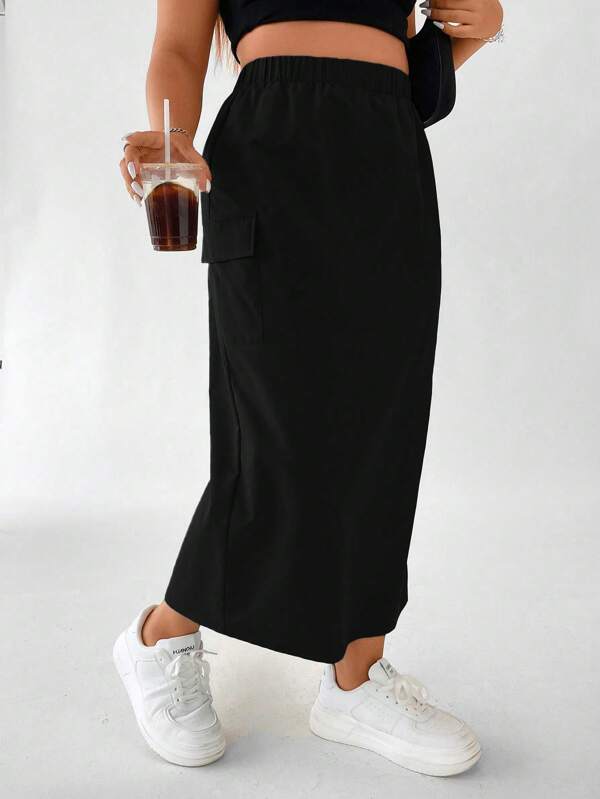 SHEIN Coolane Plus Flap Pocket Side Split Hem Skirt