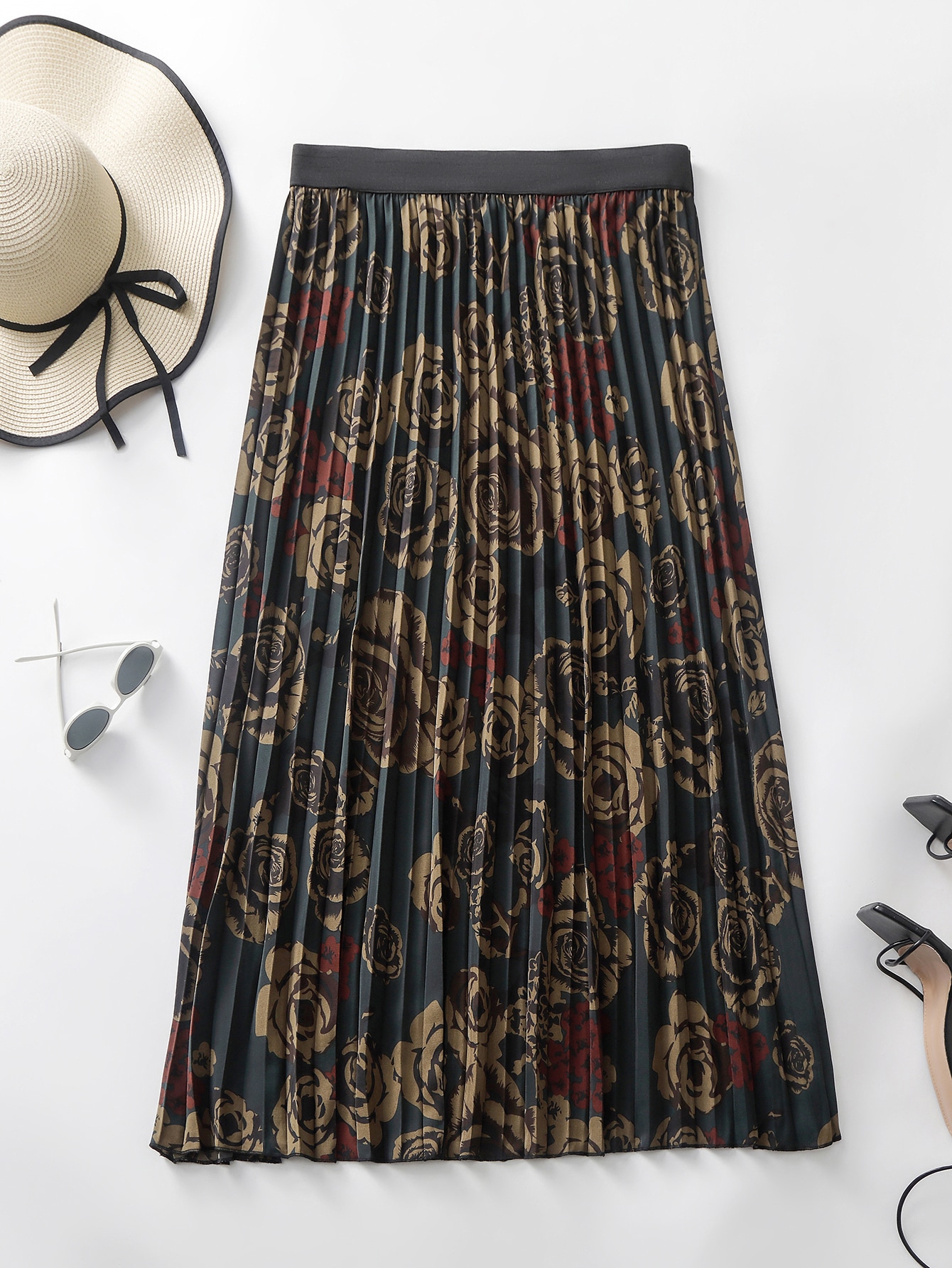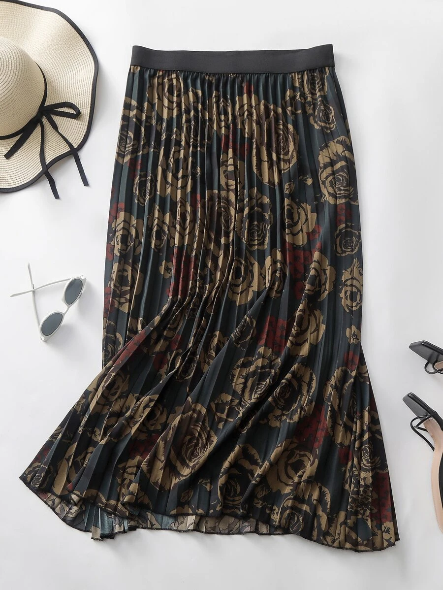 SHEIN Mulvari Plus Floral Print Contrast Tape Pleated Skirt