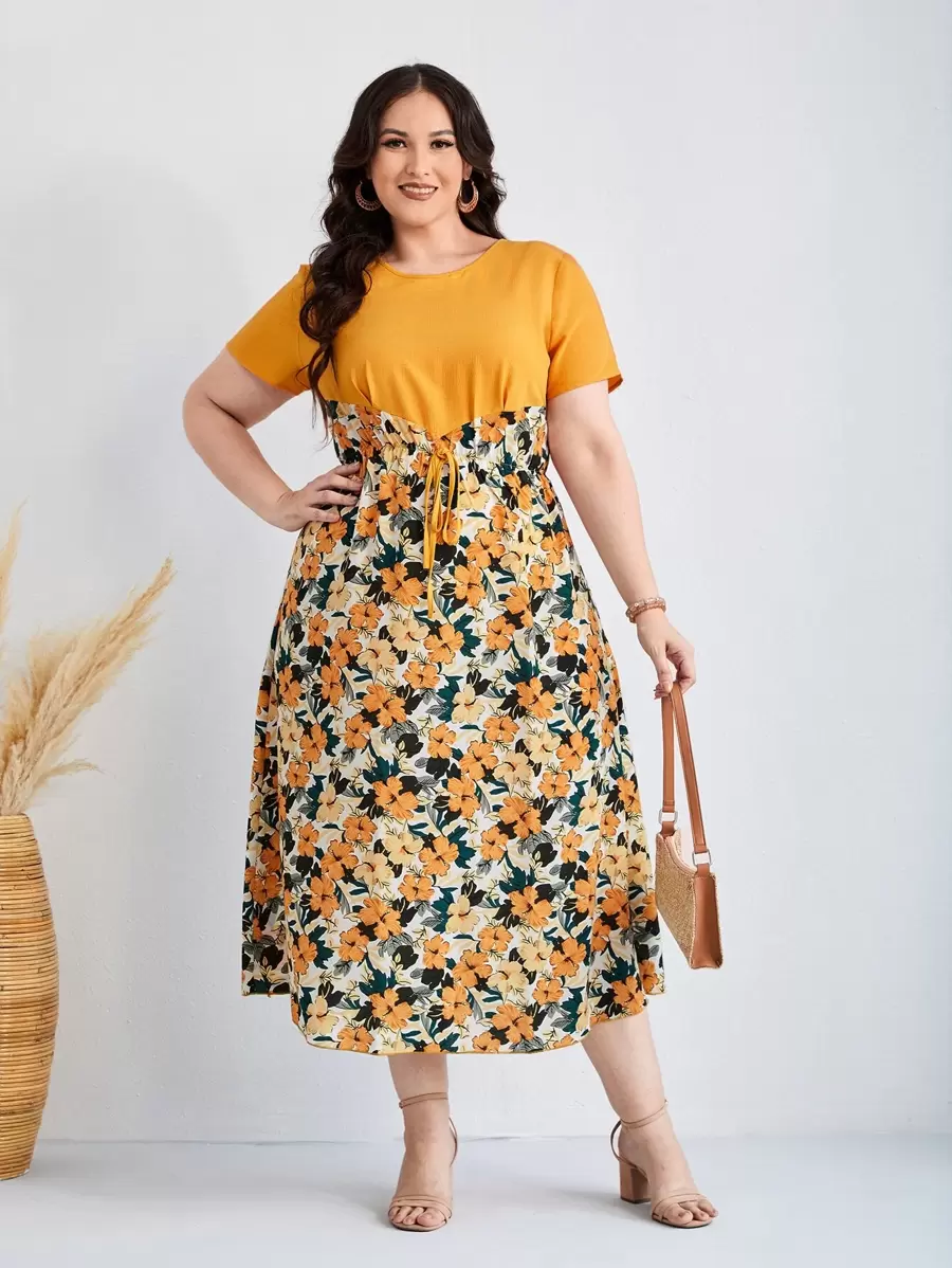 EMERY ROSE Plus Floral Print Knot Front Dress
