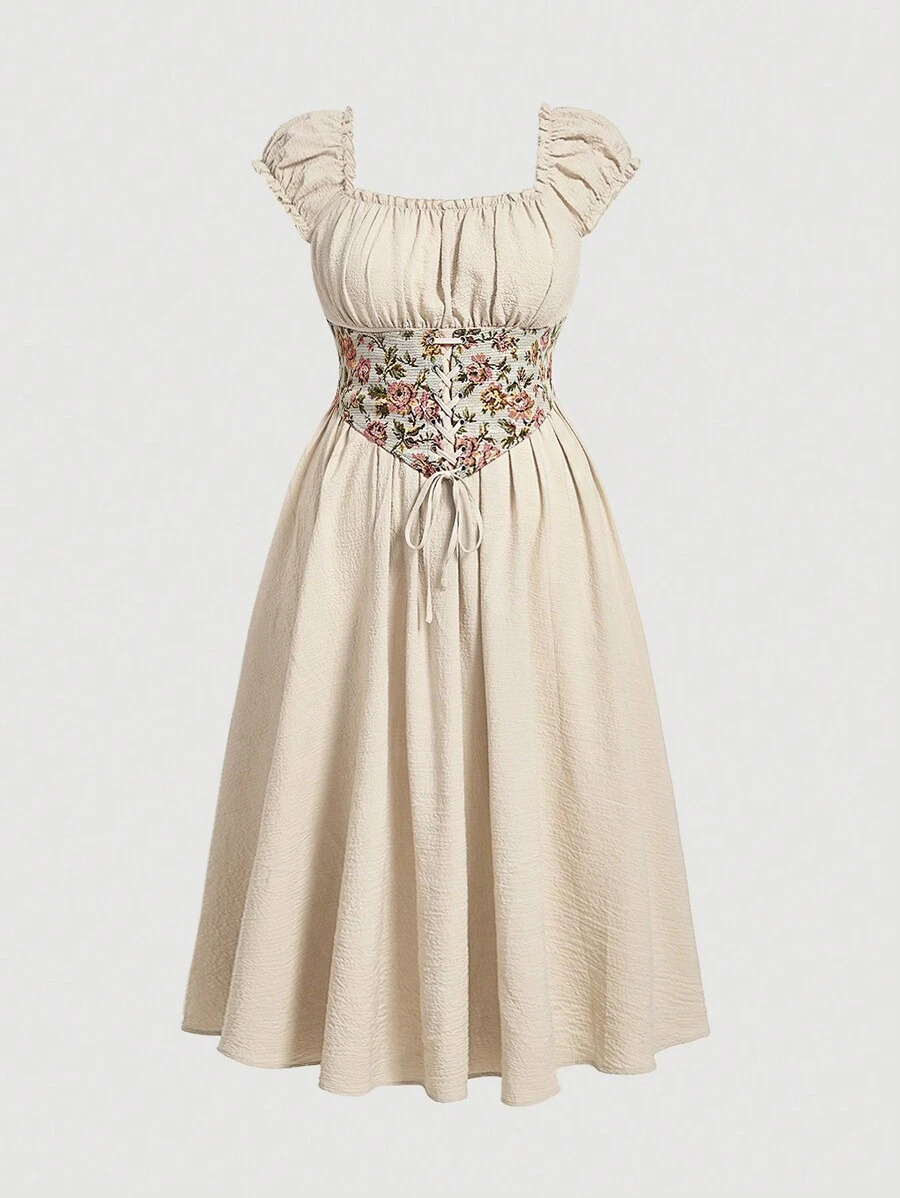 SHEIN MOD Plus Floral Print Lace Up Front Ruched Bust Dress