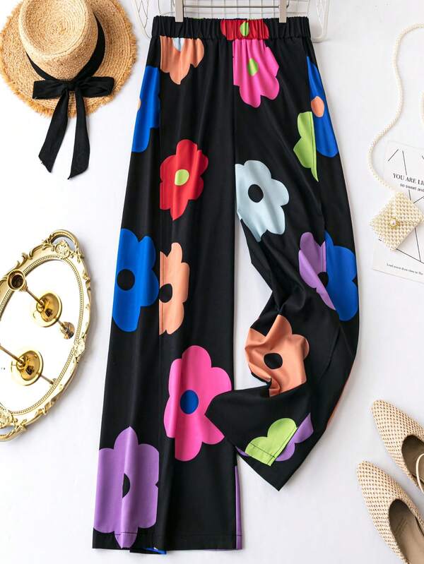 SHEIN VCAY Plus Floral Print Wide Leg Pants