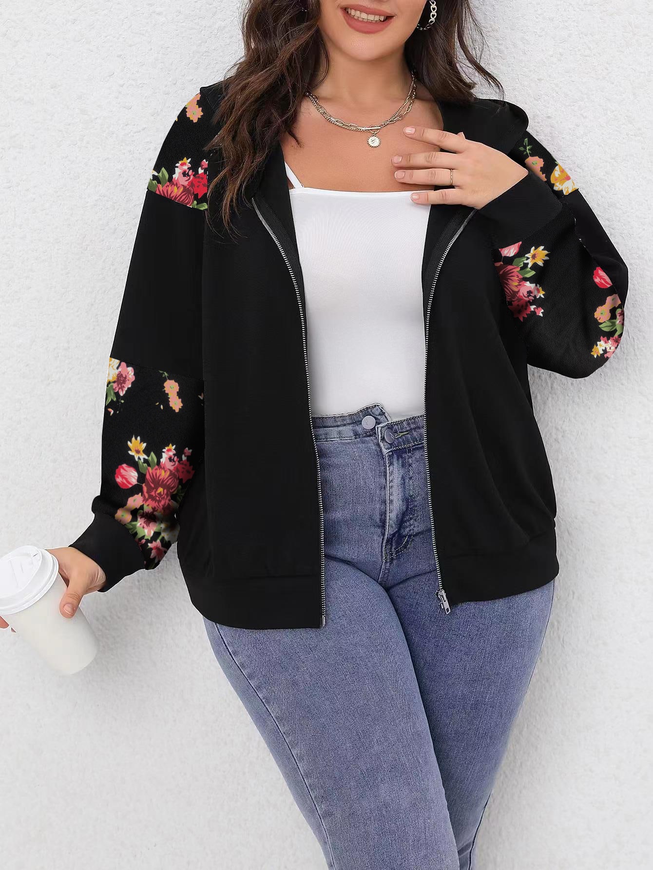 SHEIN LUNE Plus Floral Print Zip Up Hooded Jacket