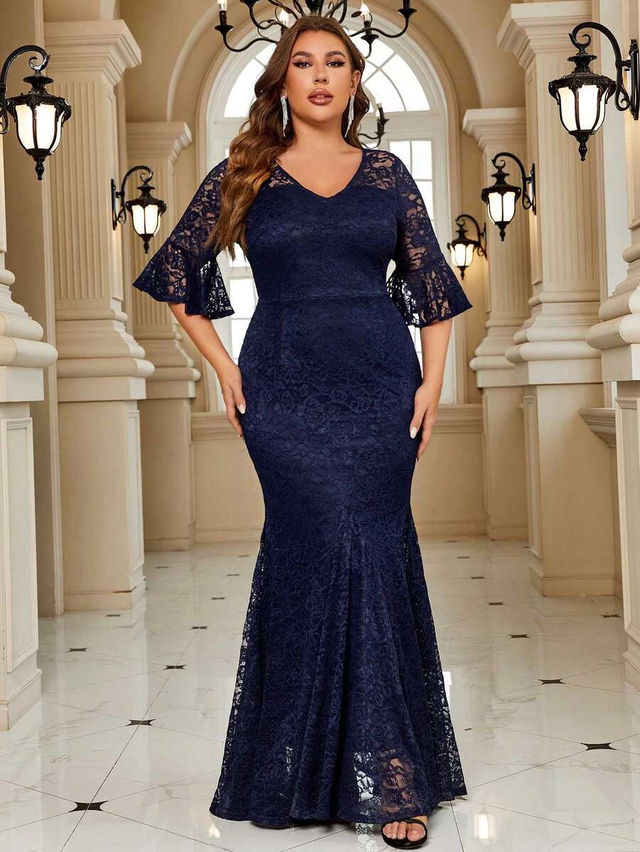 MIUSOL Plus Flounce Sleeve Lace Mermaid Dress