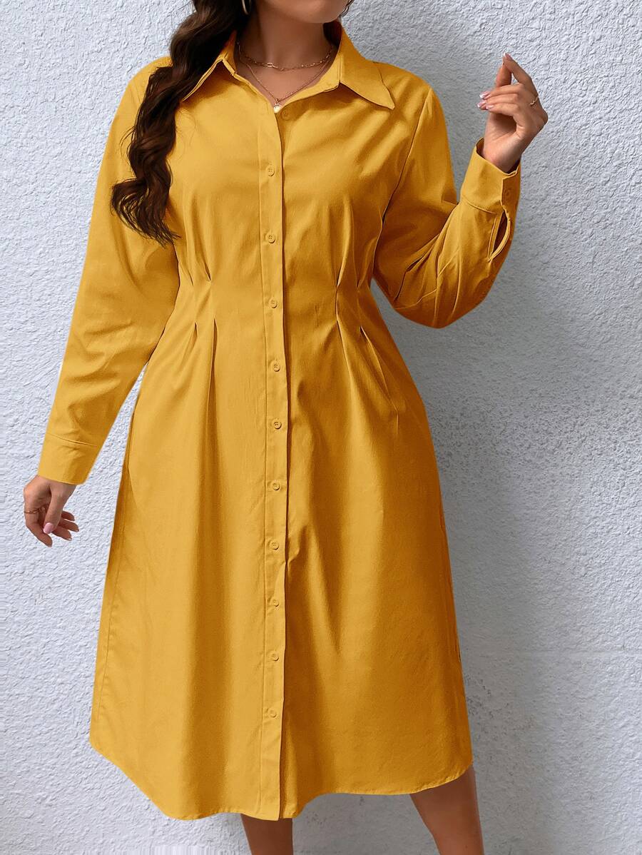 SHEIN Privé Plus Fold Pleated Shirt Dress