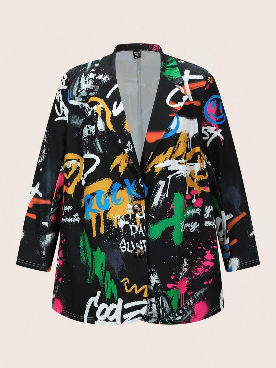 SHEIN CURVE+ Plus Graffiti Print Lapel Neck Blazer