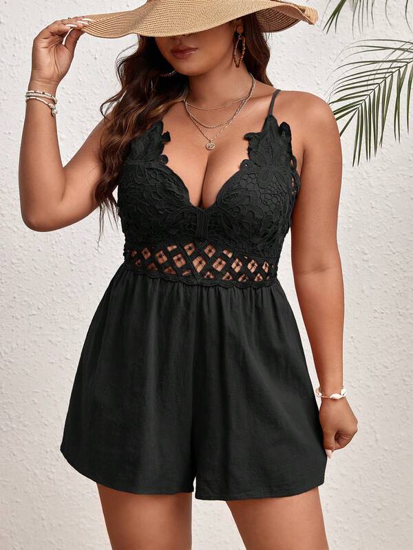 SHEIN VCAY Plus Guipure Lace Insert Cami Romper