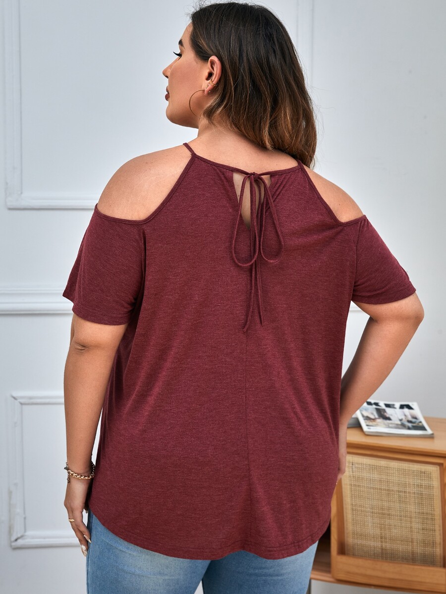 SHEIN LUNE Plus Guipure Lace Insert Cold Shoulder Tee