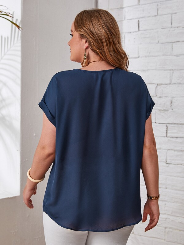 EMERY ROSE Plus Guipure Lace Yoke Cuffed Sleeve Top