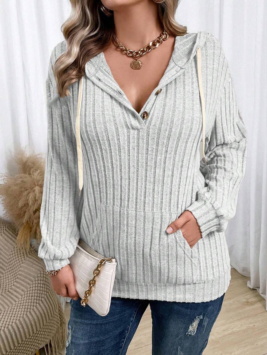 SHEIN Frenchy Plus Half Button Drawstring Hoodie