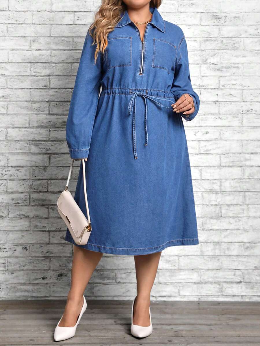SHEIN LUNE Plus Half Zip Drawstring Waist Denim Dress