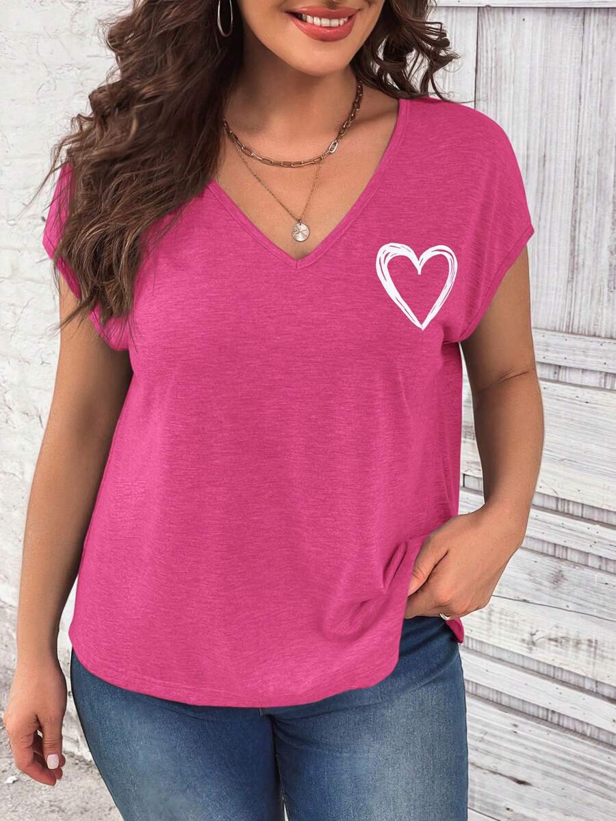 SHEIN LUNE Plus Heart Print Batwing Sleeve Tee