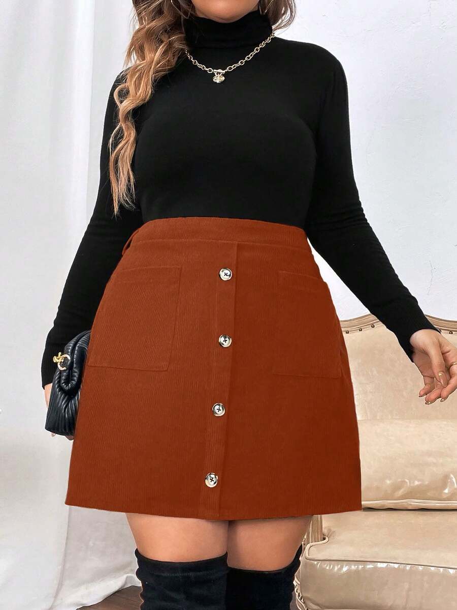 Plus High Waist Button Front Skirt