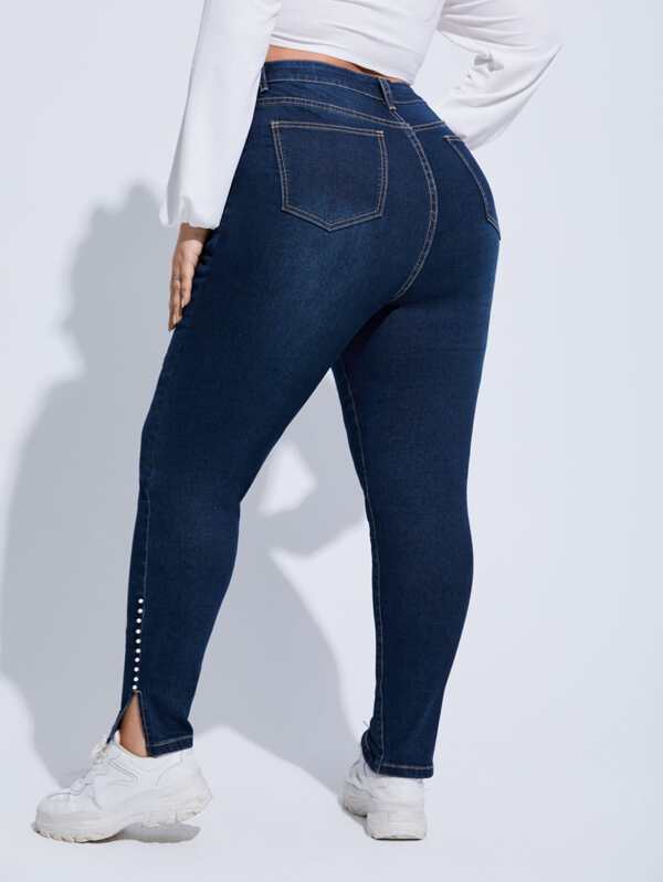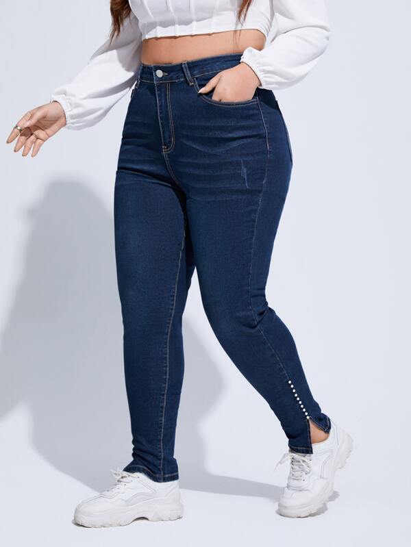 SHEIN SXY Plus High Waist Pearls Detail Skinny Jeans