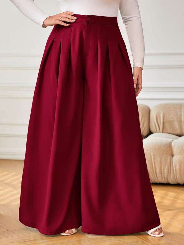 SHEIN Privé Plus High Waist Plicated Detail Wide Leg Pants