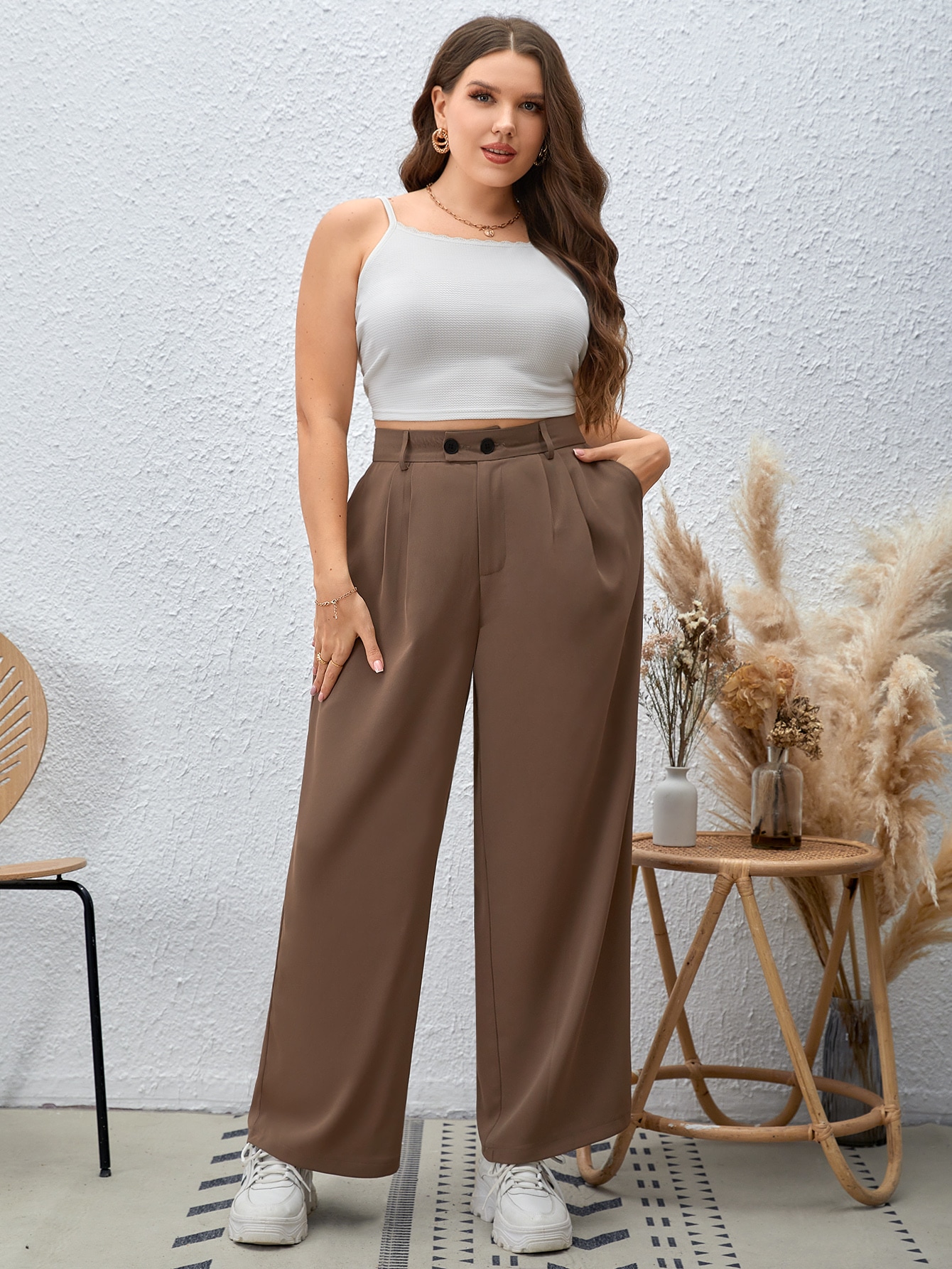 SHEIN Essnce Plus High Waist Plicated Detail Wide Leg Pants