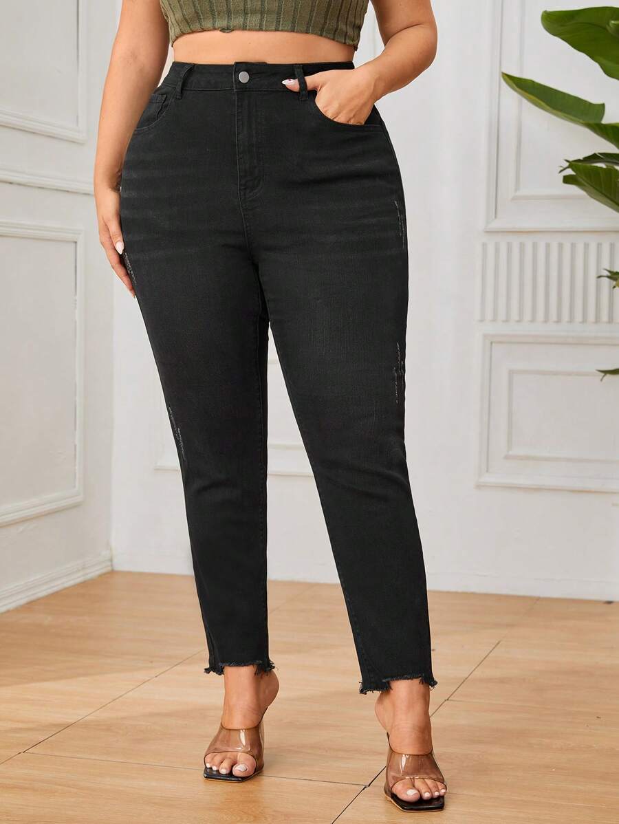 SHEIN Privé Plus High Waist Raw Cut Skinny Jeans