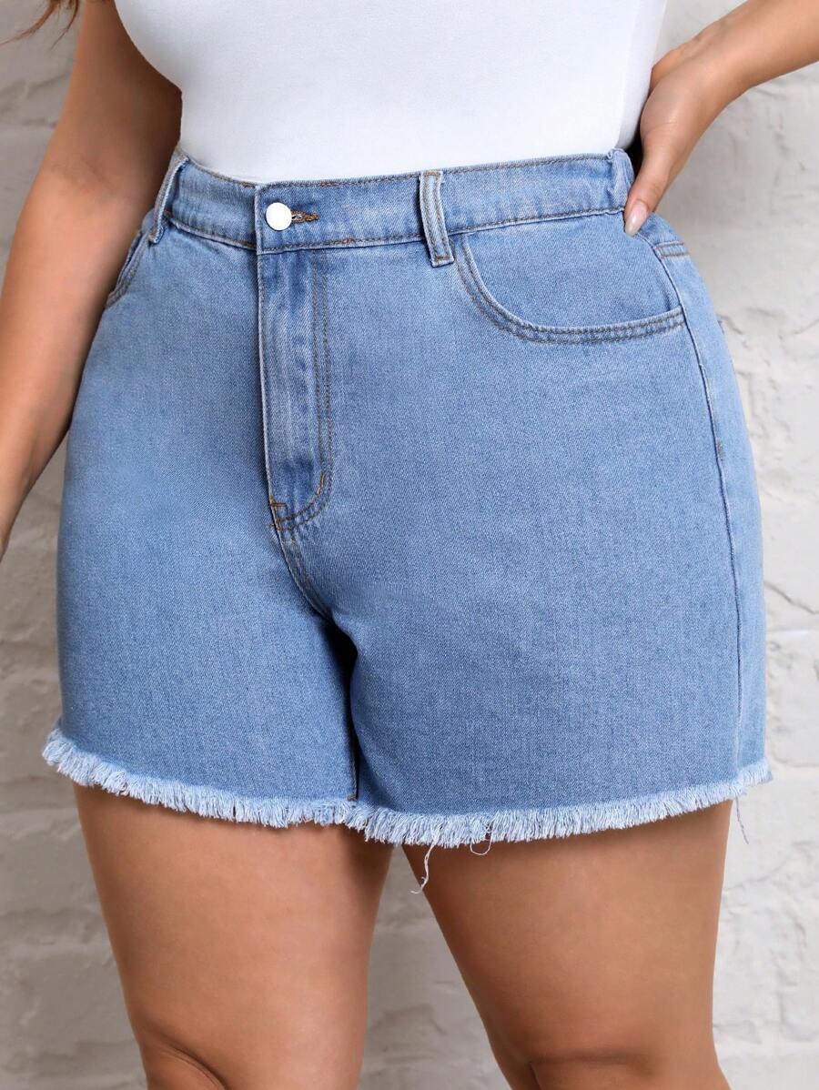 SHEIN Essnce Plus High Waist Raw Hem Denim Shorts