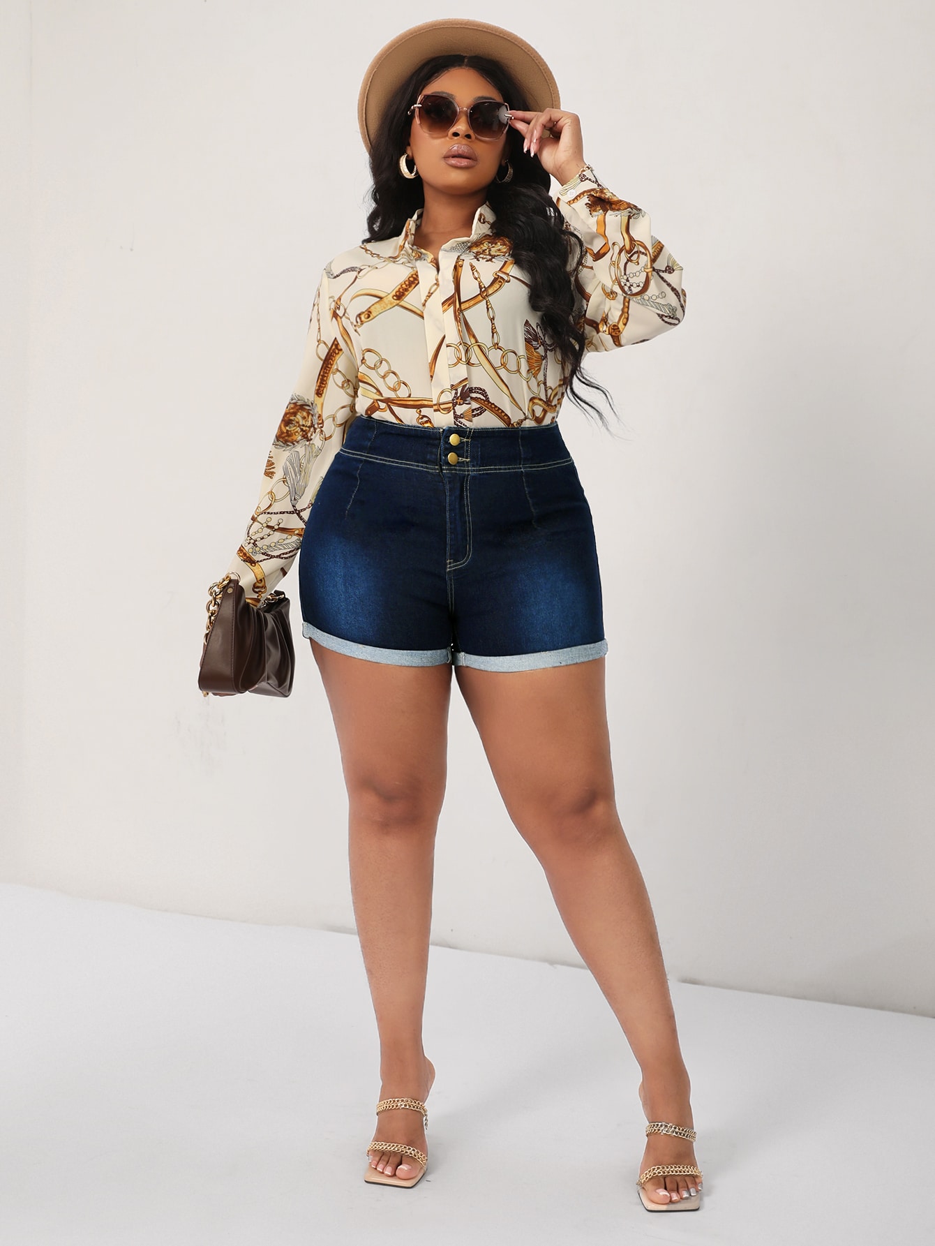 SHEIN SXY Plus High Waist Roll Hem Denim Shorts