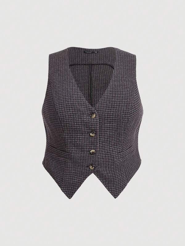 SHEIN MOD Plus Houndstooth Print Vest Blazer