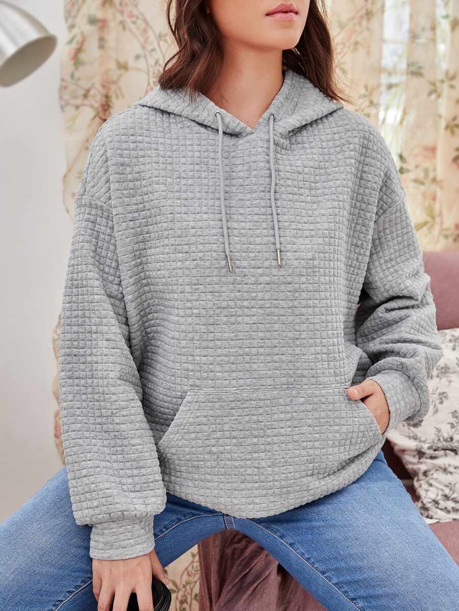 SHEIN EZwear Plus Kangaroo Pocket Drawstring Hoodie