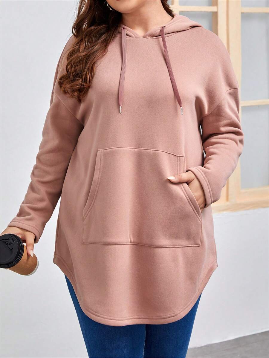 SHEIN LUNE Plus Kangaroo Pocket Drop Shoulder Drawstring Hoodie