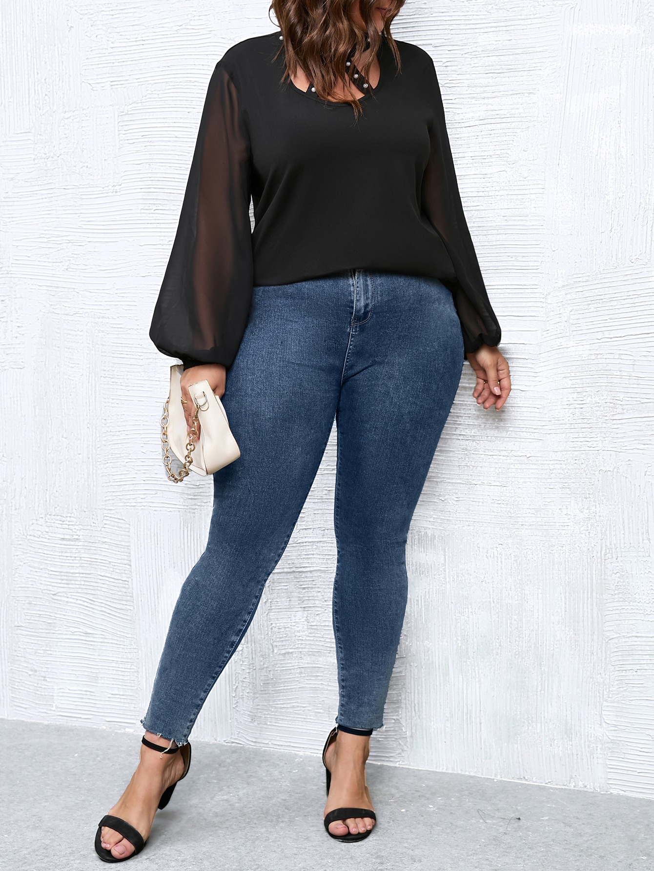 SHEIN Unity Plus Keyhole Neckline Lantern Sleeve Top