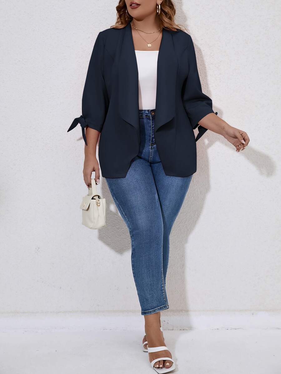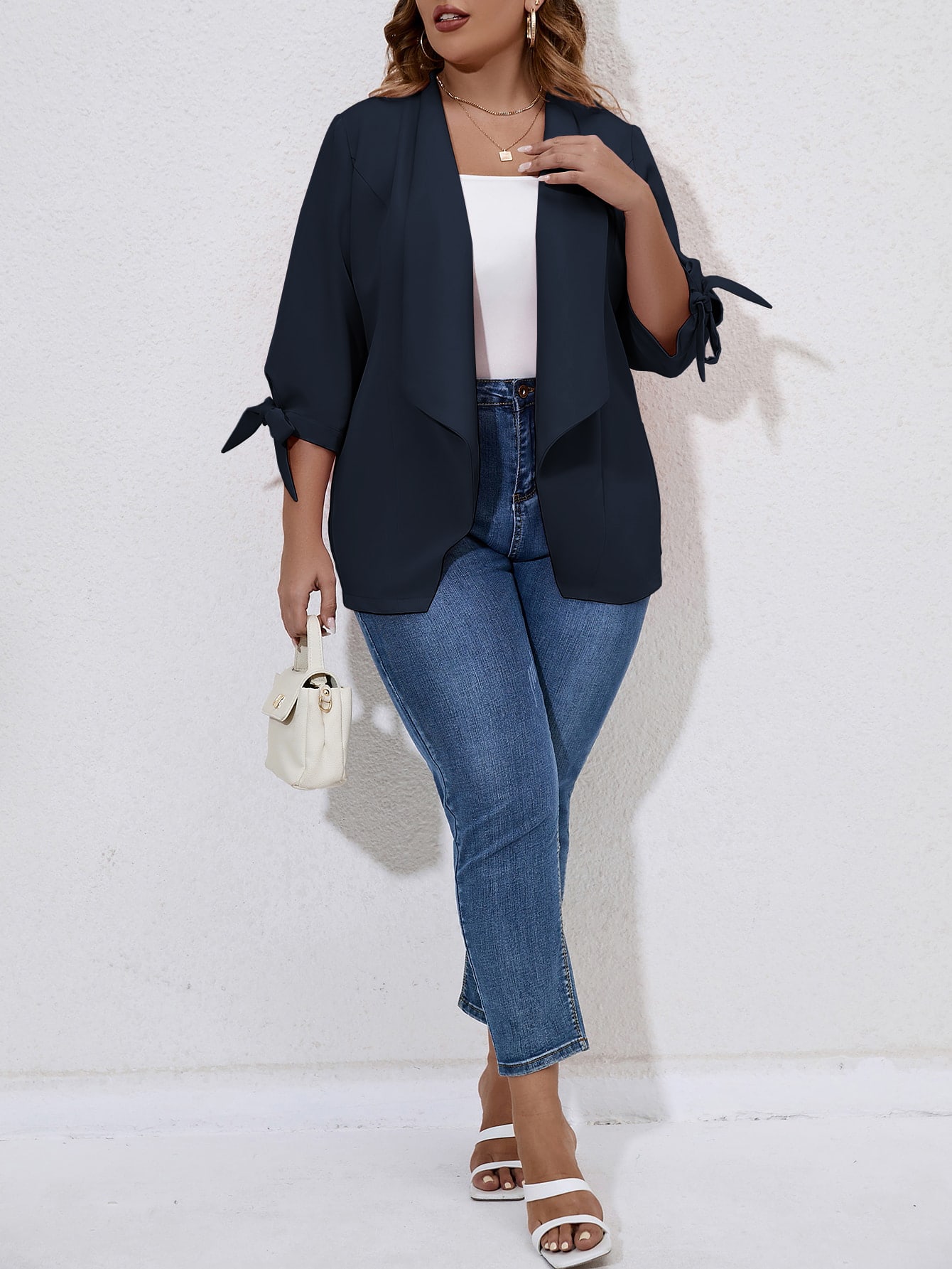 SHEIN LUNE Plus Knot Cuff Open Front Blazer