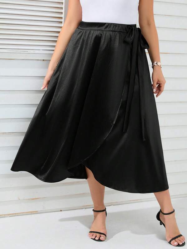 SHEIN Clasi Plus Knot Side Wrap Hem Skirt
