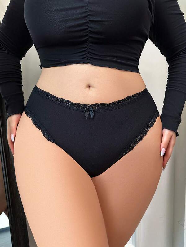 SHEIN Plus Lace Trim Bow Front Panty