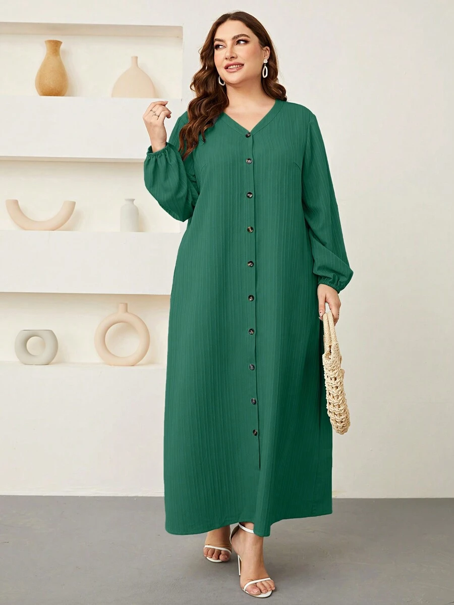 SHEIN Mulvari Plus Lantern Sleeve Button Front Dress