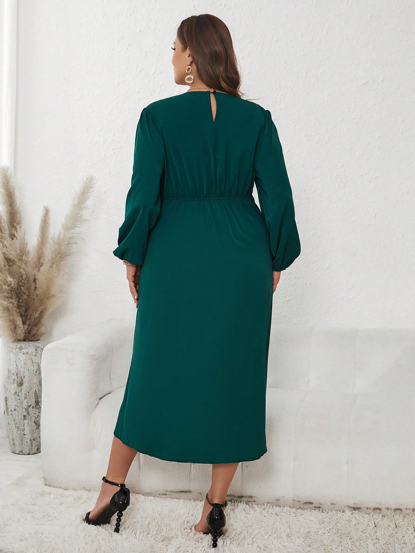 SHEIN Clasi Plus Lantern Sleeve Ruched Front Dress