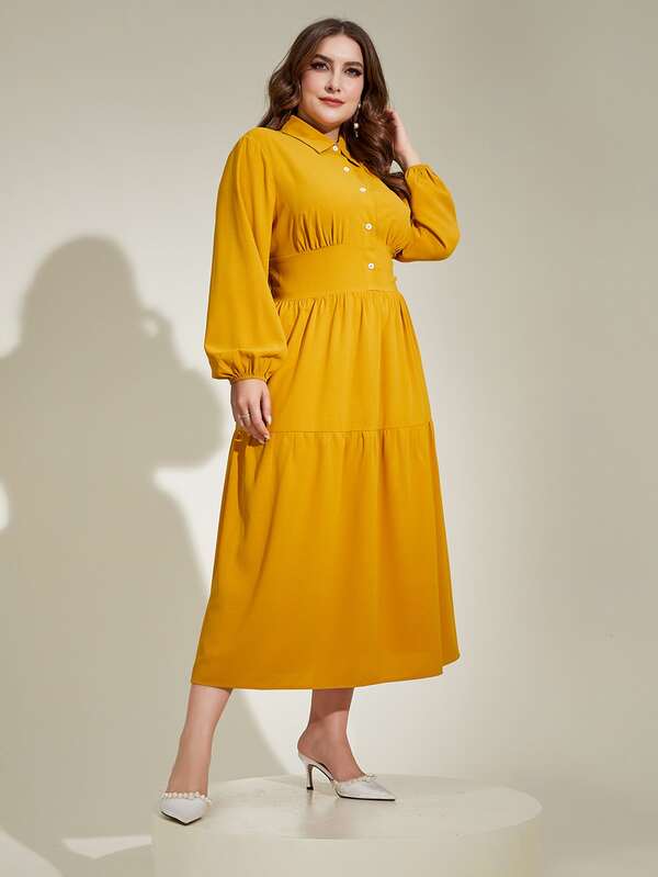 SHEIN Mulvari Plus Lantern Sleeve Ruffle Hem Shirt Dress