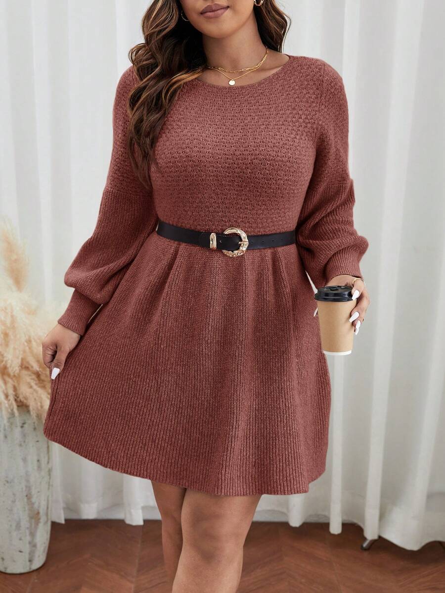 SHEIN Frenchy Plus Lantern Sleeve Sweater Dress Without Belt
