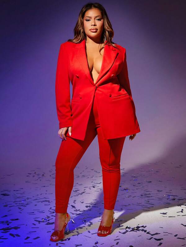 SHEIN SXY Plus Lapel Neck Blazer & Leggings