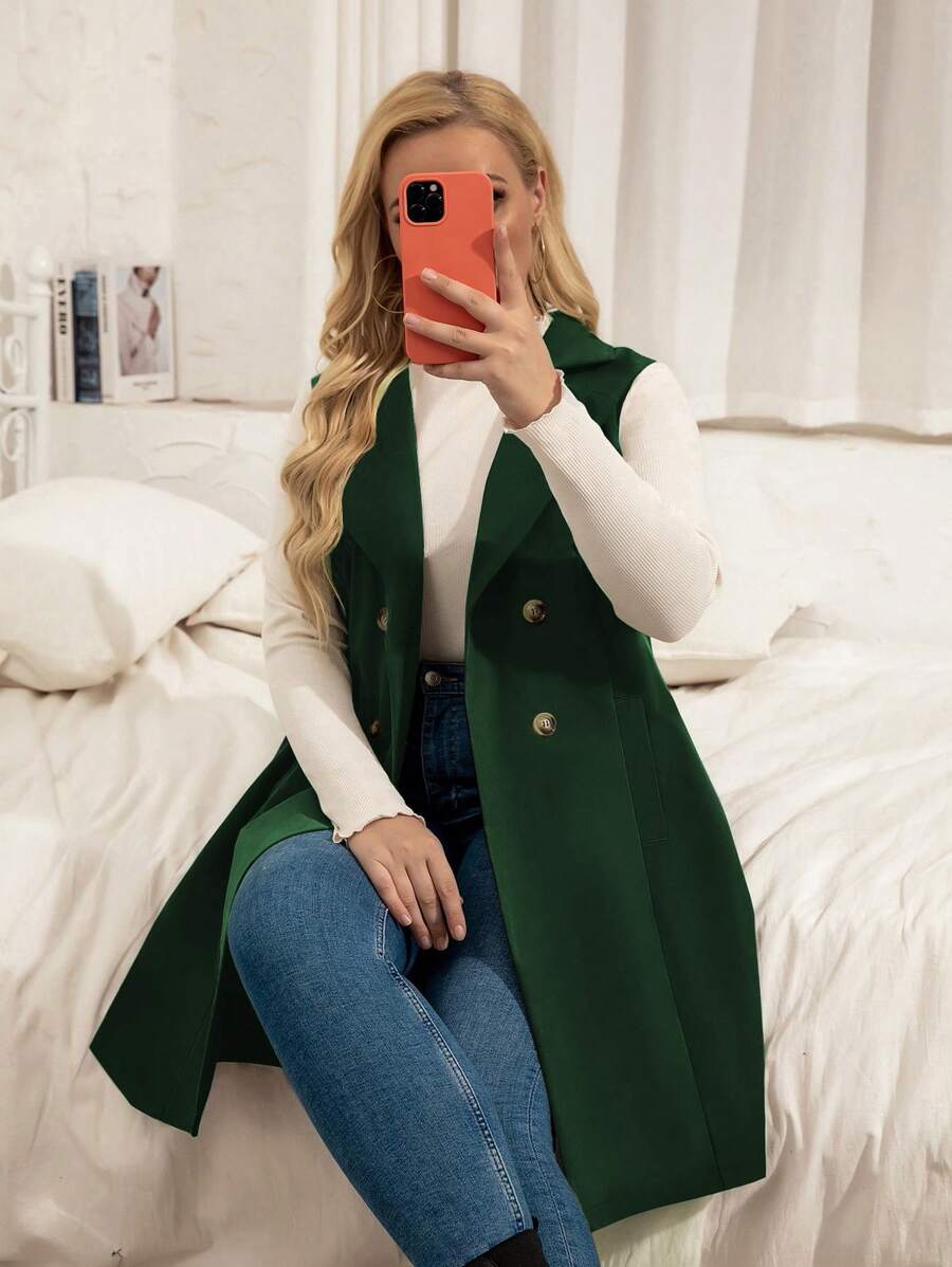SHEIN Essnce Plus Lapel Neck Double Breasted Slant Pockets Sleeveless Coat