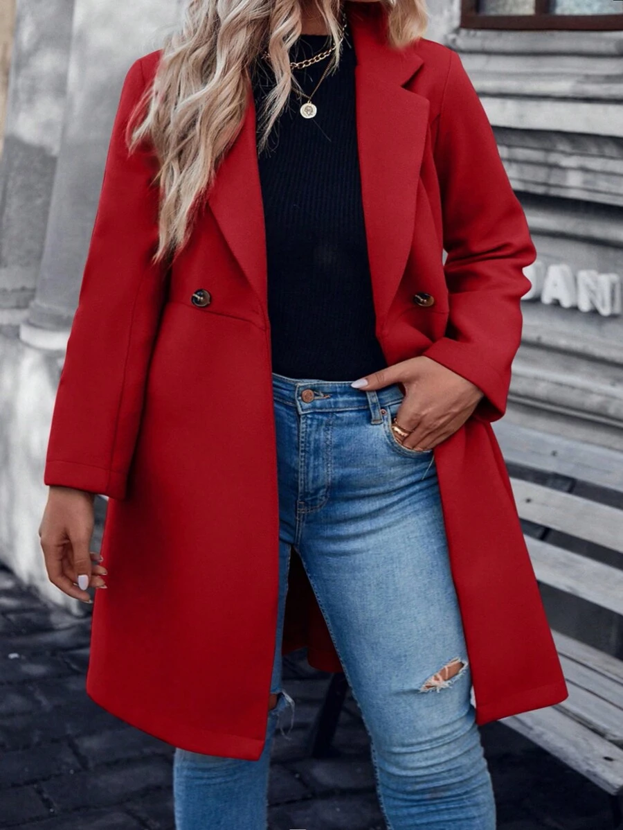 SHEIN LUNE Plus Lapel Neck Double Button Belted Overcoat